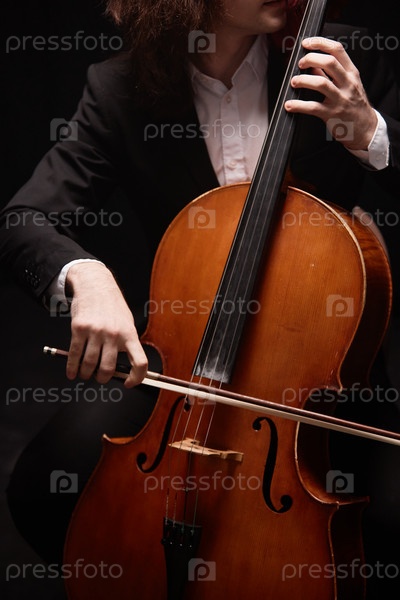 Инструменталист исполняет сюжет для виолончельника в студии записи