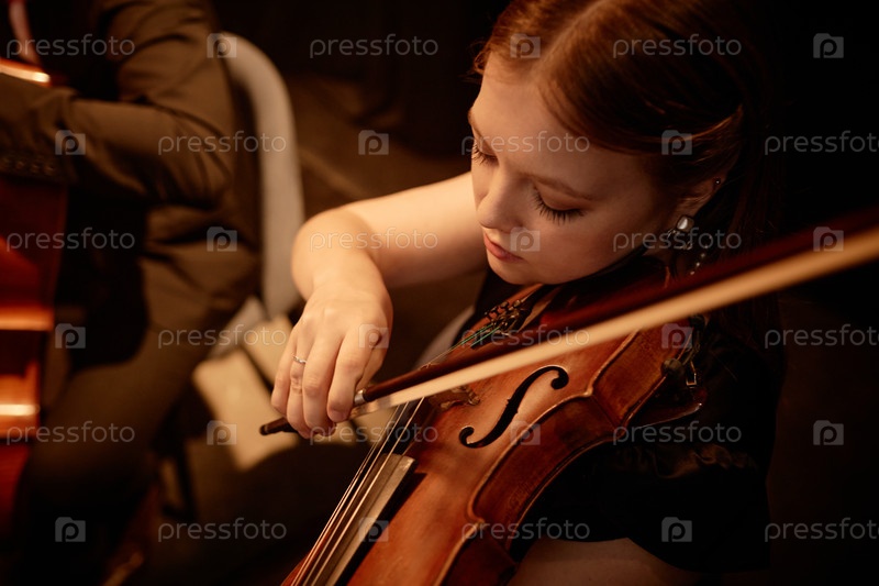Профессиональный камерный музыкант играет на скрипке в студии записи