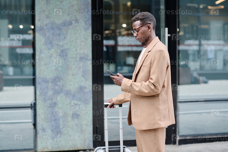 Молодой чернокожий мужчина в деловой поездке