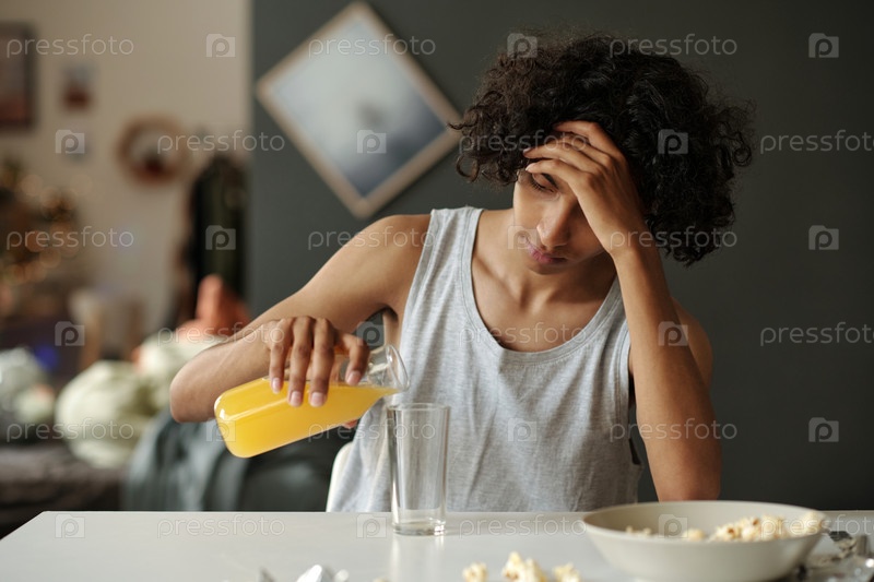 Подросток завтракает после выпивки