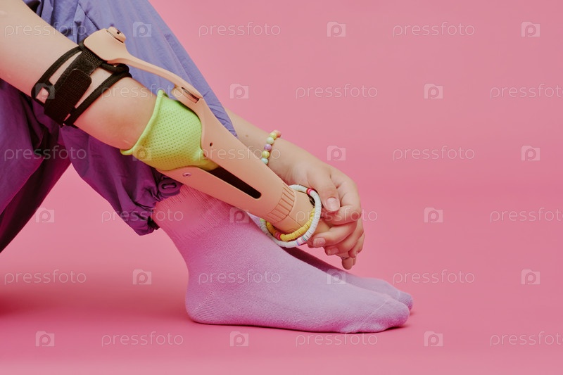 Непризнанная девушка с протезом сидит на полу