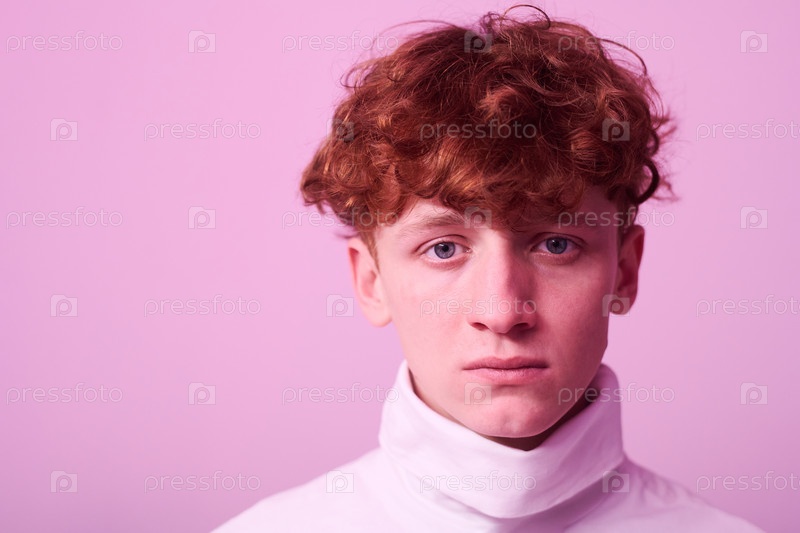 Портрет молодого человека с кудрявыми красными волосами, носящего черепаху