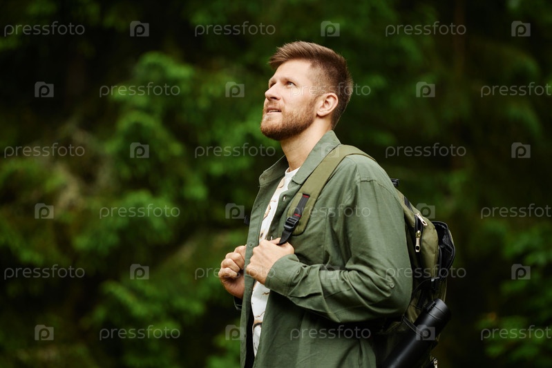 Исследование природной тропы с рюкзаком в лесу