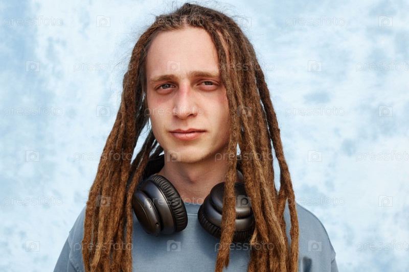 Портрет молодого человека с длинными дредлоками, носящего наушники