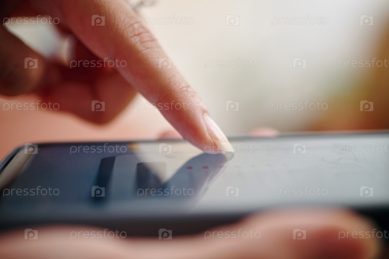 Прикосновение к экрану смартфона для доступа к информации