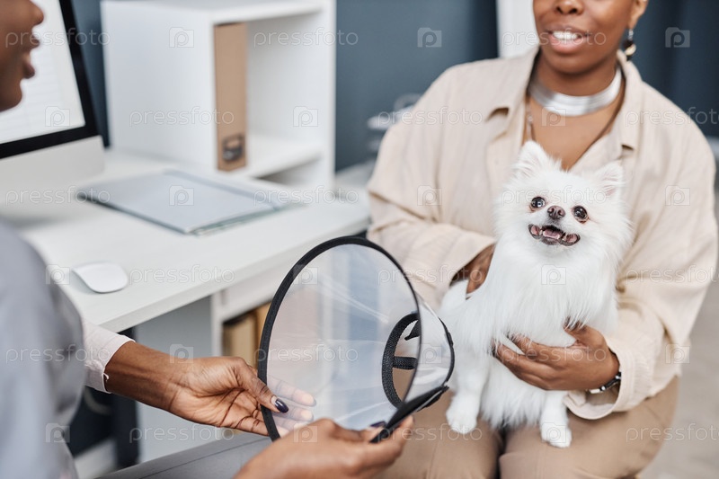 Счастливая белая собака перед тем, как надеть защитный воротник