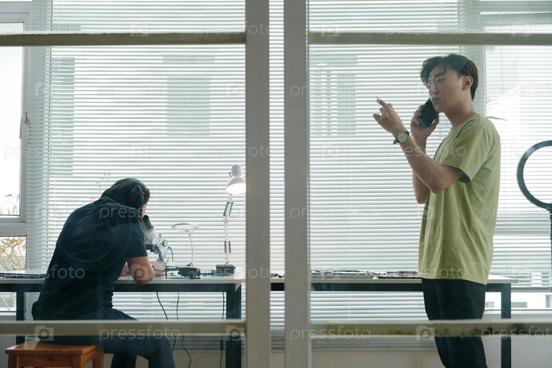 Коллеги, работающие с компьютерами на разных рабочих станциях