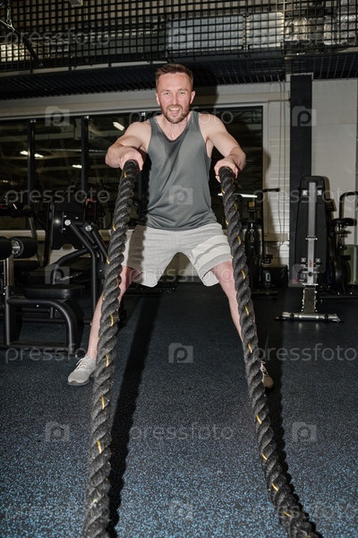 Человек, использующий веревки в тренажерном зале