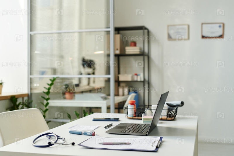 Ноутбук, окруженный медицинскими принадлежностями