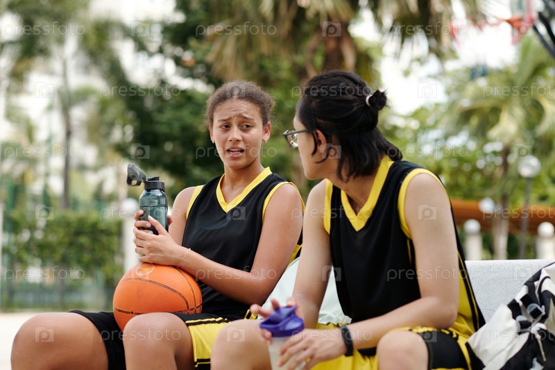 Расслабление после баскетбольной игры с товарищем по команде на скамейке