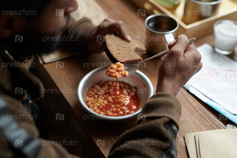 Наслаждаться тарелкой выпеченных бобов на завтрак в уютной обстановке