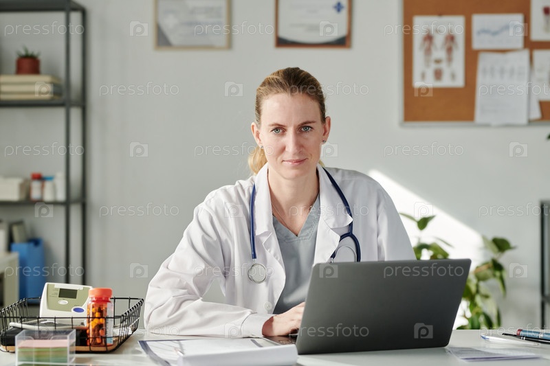 Женщина-врач консультирует пациентов онлайн