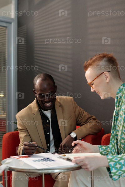Сотрудники просматривают документы вместе в офисе