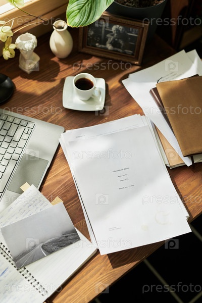 Работа с документами на деревянном столе в офисной обстановке