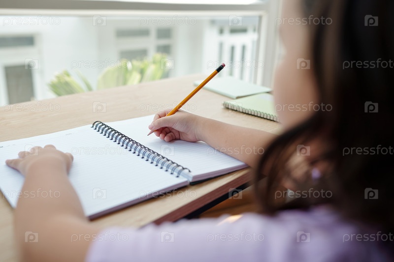 Ученица делает домашнее задание дома