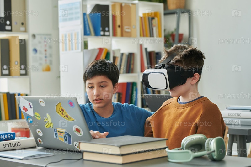 Два мальчика наслаждаются ИТ-классом для детей