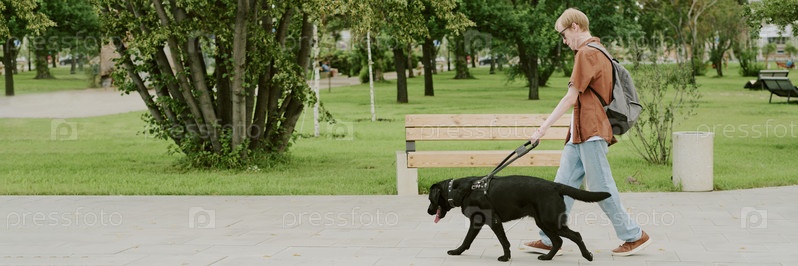 Человек, идущий с собакой-поводырем