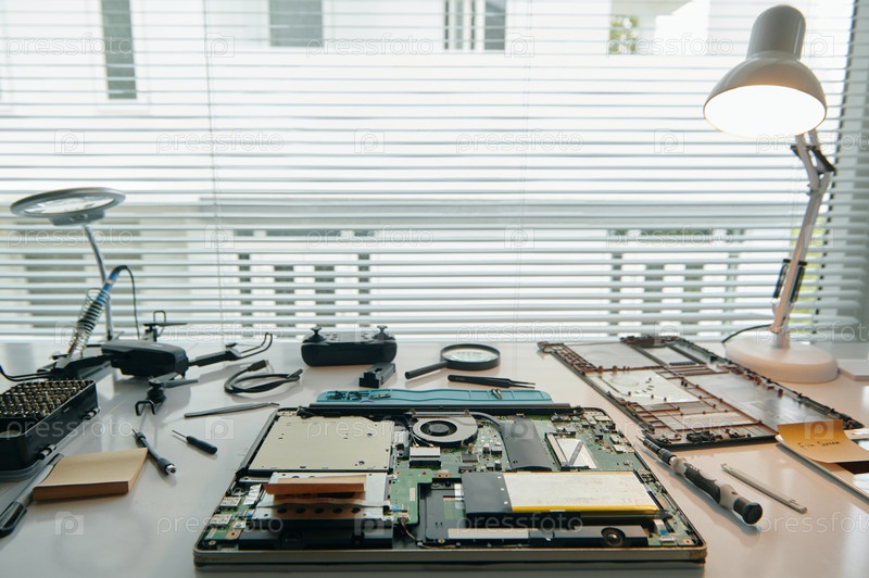 Рабочее место компьютерного мастера в офисе
