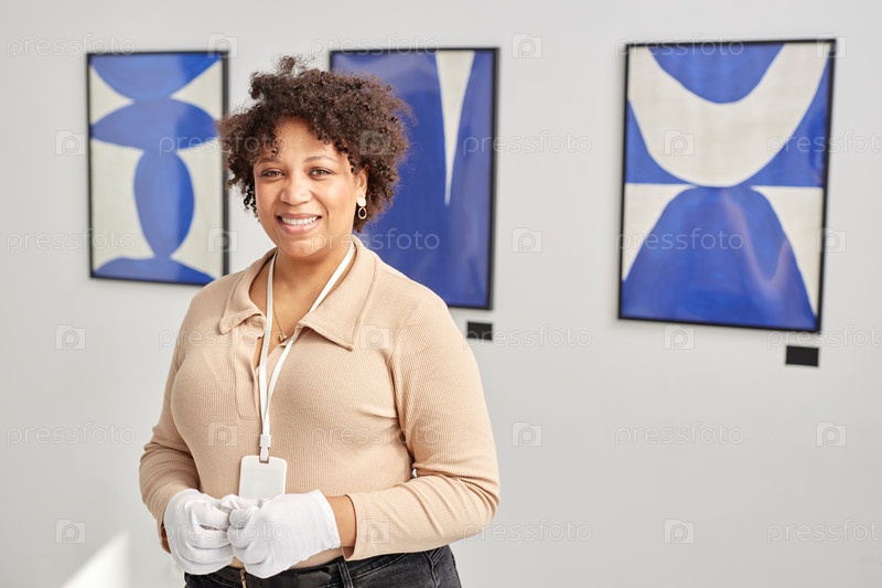 Черная женщина, работающая в художественной галерее