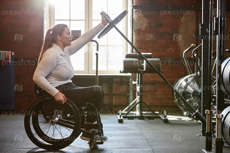 Женщина с инвалидностью в спортивном клубе делает упражнения