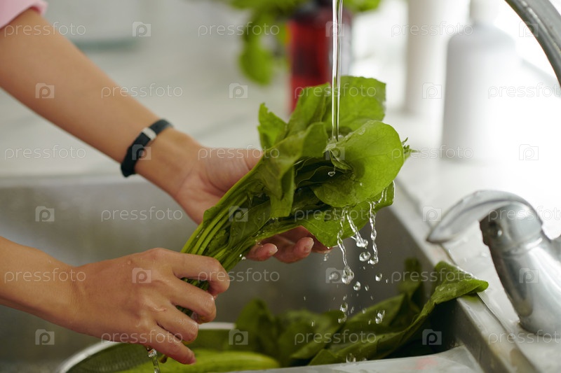 Женщина, стирающая свежие овощи для салата