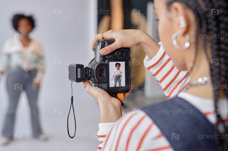 Фотограф, держащий камеру во время фотосессии