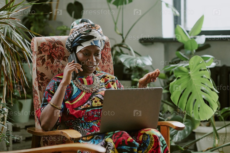 Деловая женщина, ведущая разговор через смартфон