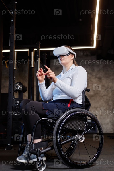 Женщина с инвалидностью, использующая VR в фитнес-клубе