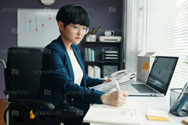 Деловая женщина, работающая на своем рабочем месте в офисе