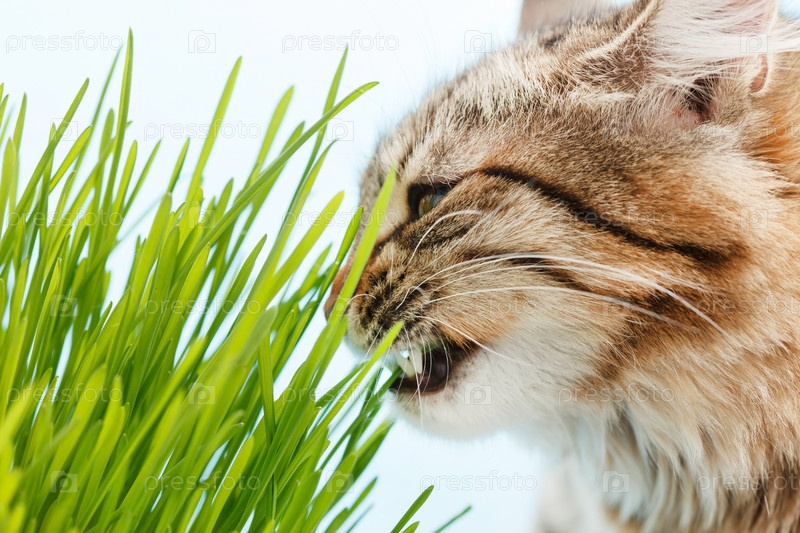 Кошка ест траву