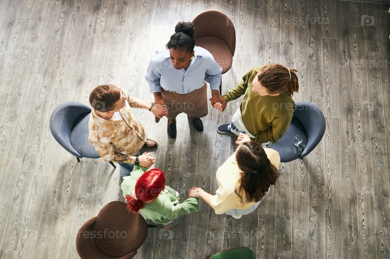 Различные группы держатся за руки, стоя в кругу