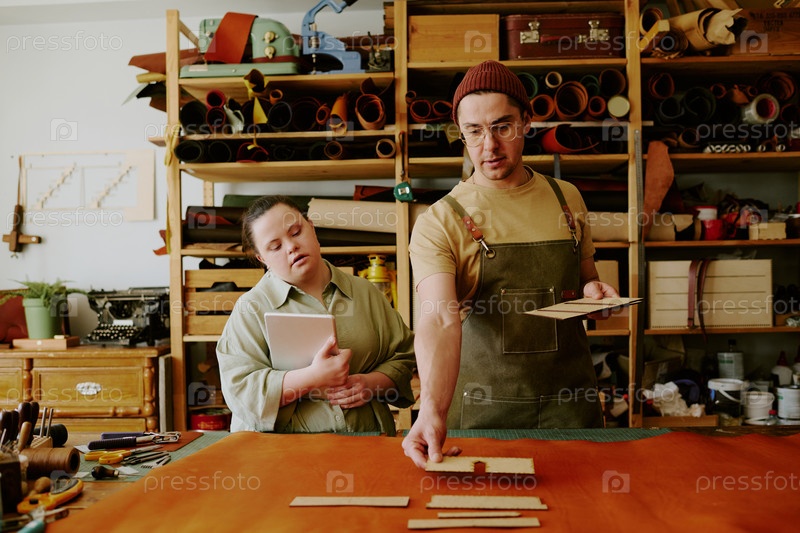 Хранитель и его помощник, создающий кожаные изделия мужского пола