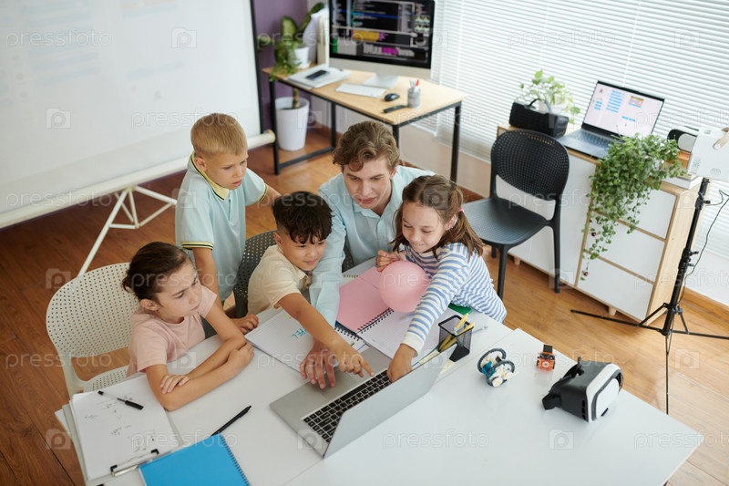 Учитель привлекает детей к уроку интерактивных технологий