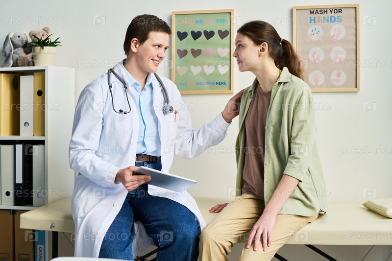 Врач, помогающий пациенту в условиях медицинского кабинета