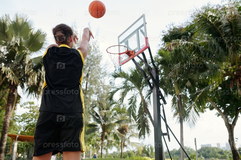 Играть в баскетбол под пальмами на открытом поле