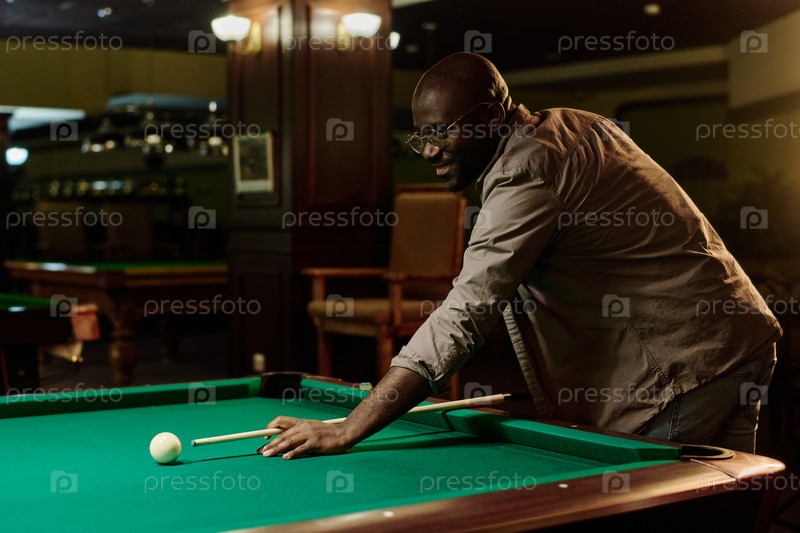 Удар по мячу во время игры в бильярд