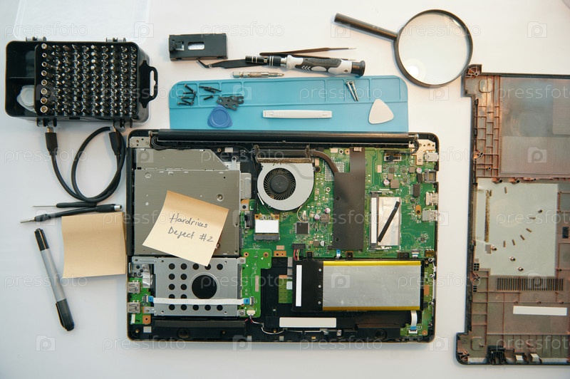 Демонтированный ноутбук готов к ремонту