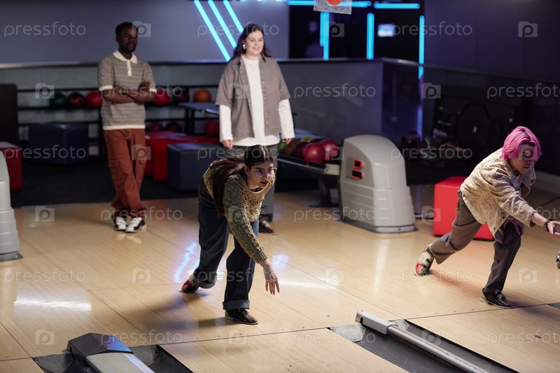 Друзья, наслаждающиеся Indoor Bowling Activity
