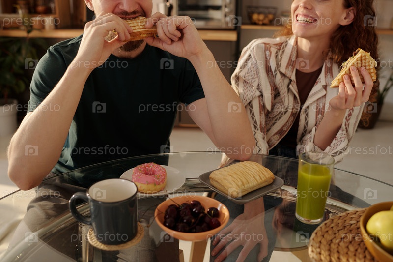Счастливая пара ест бутерброды