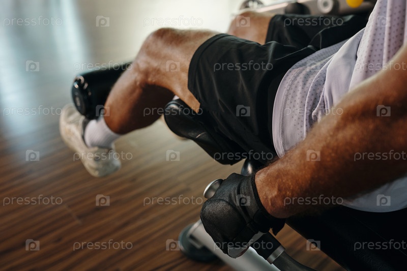 Мужчина тренирует ноги в тренажерном зале