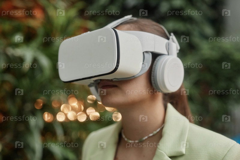 Женщина с белой VR гарнитурой