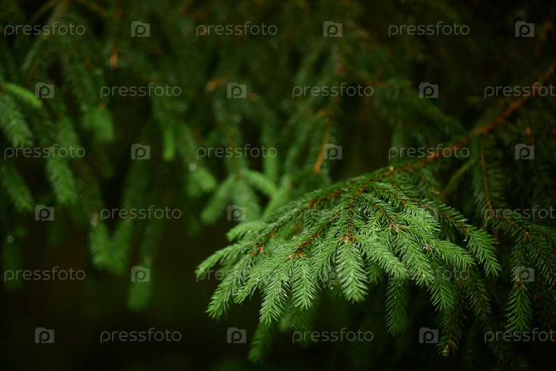 Ближайшее изображение вечнозеленых ветвей с темным фоном