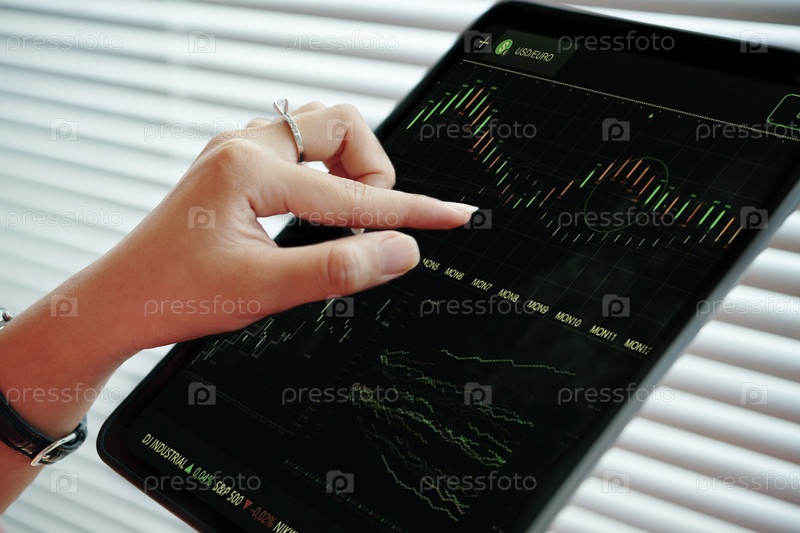 Анализ тенденций фондового рынка на экране планшета