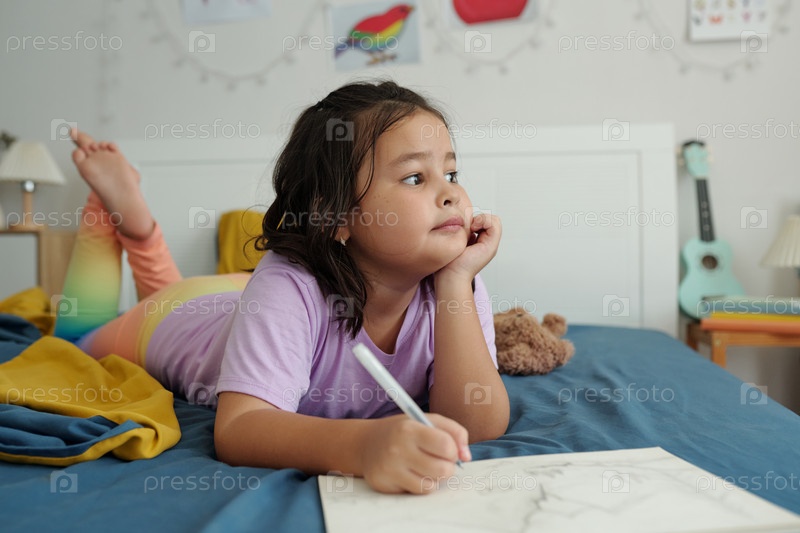 Маленькая девочка рисует в постели