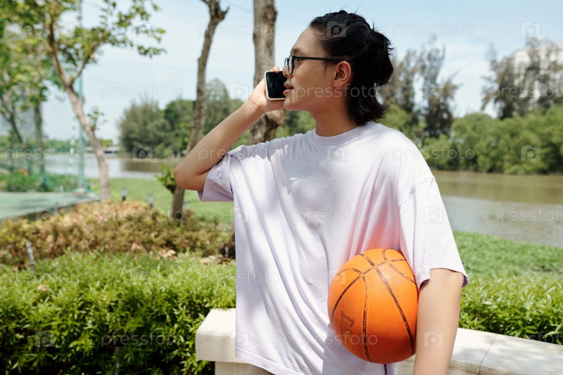 Разговаривать по телефону, играя в баскетбол на свежем воздухе