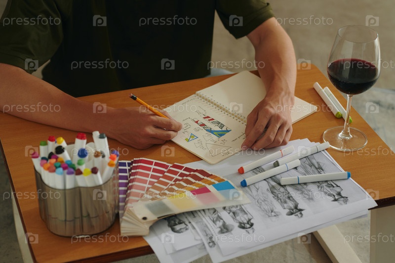 Дизайнер, работающий с коллекцией за столом