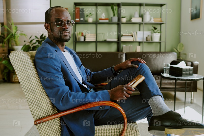 Выпивая чашку кофе, сидя в стильном офисном кресле