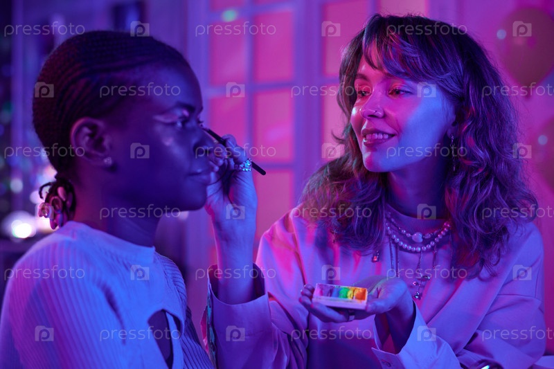 Макияжный художник использует люминесцентную краску для лица