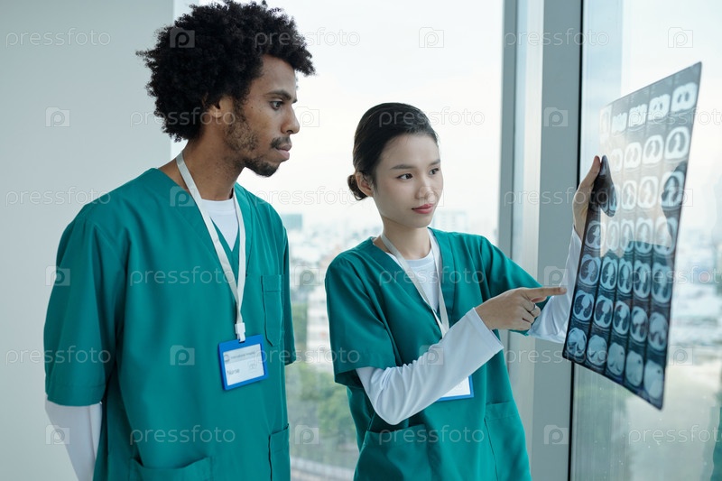 Коллеги обсуждают диагноз на рентгеновском изображении