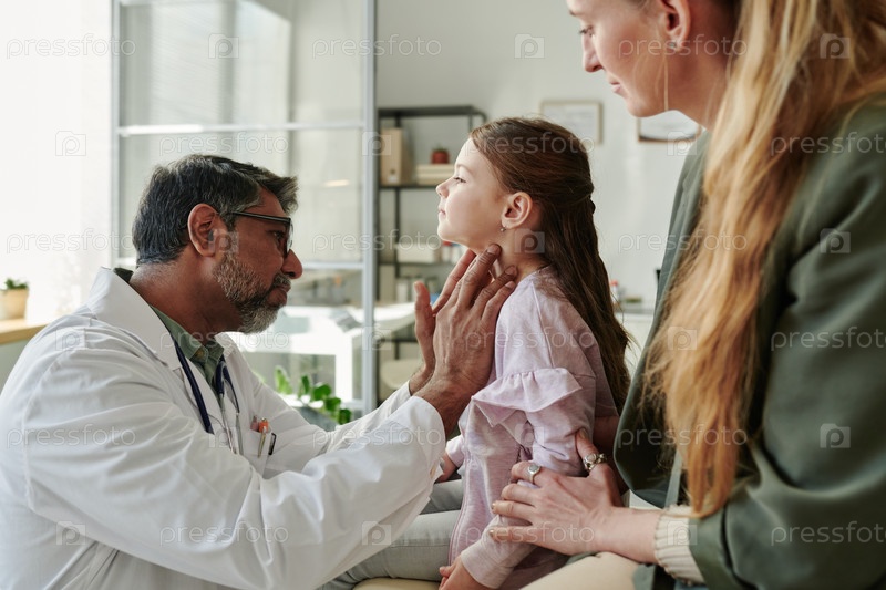 Маленькая девочка проходит обследование щитовидной железы